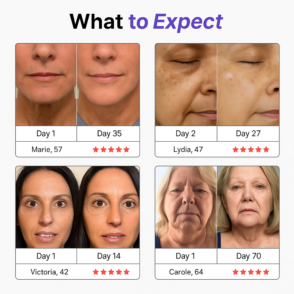 Many users notice smoother skin and a firmer complexion after just a few uses. For more visible results, such as wrinkle reduction, a more refined complexion, or reduced acne, we recommend daily use for 2 to 4 weeks.