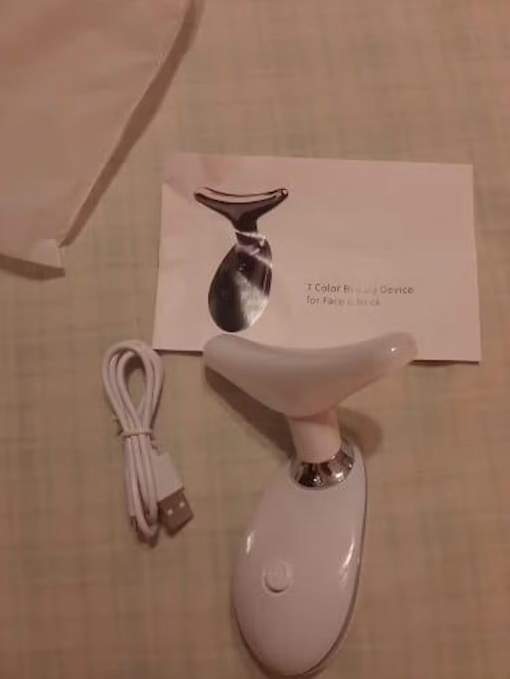 Each Lumea Sculpt pack includes the device, a USB charging cable, and a user manual. Made with premium, skin-safe materials, it is lightweight and ergonomic. For best results, apply on clean skin with a serum or gel and glide upward along the jawline, neck, and cheeks for 5–10 minutes, 3–4 times per week.